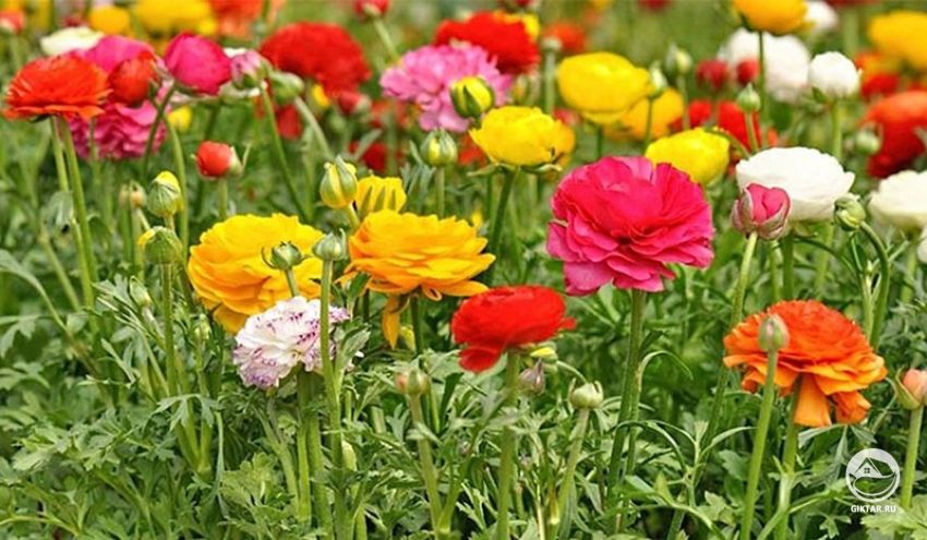 Корневища ранункулюса — небольшие клубни. Посадочный материал лучше покупать осенью. А высаживать в конце апреле и начале мае, когда земля прогреется. Перед посадкой клубни нужно на два часа замочить в воде комнатной температуры.