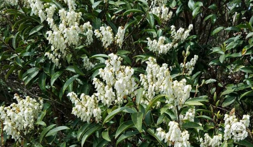 Пиерис красивый (Pieris formosa), известный также под названиями Пиерис китайский и Пиерис гималайский - это вечнозеленый кустарник семейства Вересковых с плотными ланцетными листьями и белыми колокольчатыми цветками, похожими на ландыши, собранными в колосок.