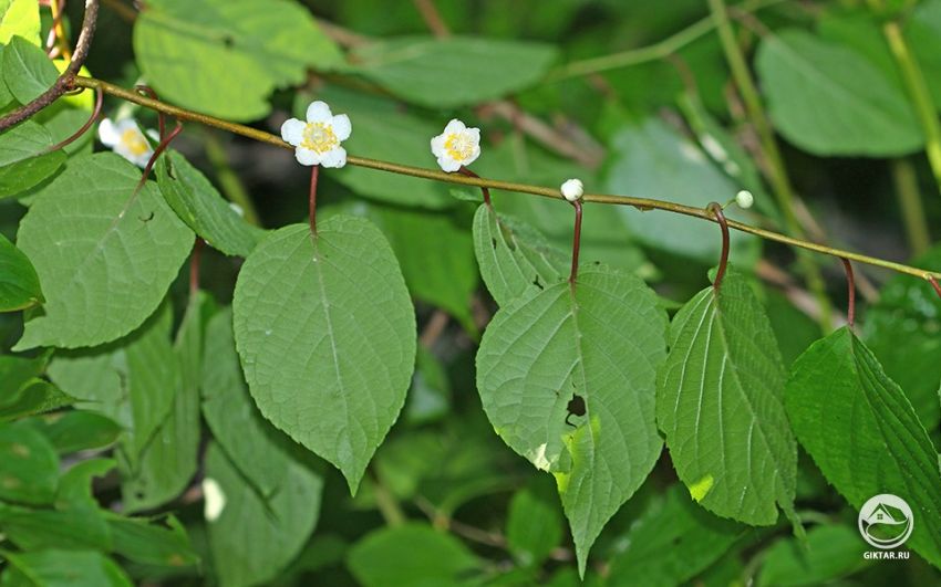 Поскольку актинидия - двудомное растение, цветки на мужских растениях отличаются от женских - у цветков множество тычинок, но нет пестика. В свою очередь у женских цветков актинидии есть пестик, обрамленный небольшим количеством тычинок.