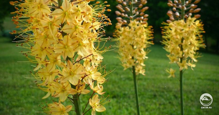 Эремурус прекрасен во время цветения. У него пышное и величественное соцветие на прочном цветоносе — никакой ветер ему не страшен.Название "эремурус" происходит от древнегреческих слов : "эремос" — пустыня и "ура" — хвост. Так что растение вполне заслужило название "пустынный хвост". В других странах его называют Лилия "лисий...