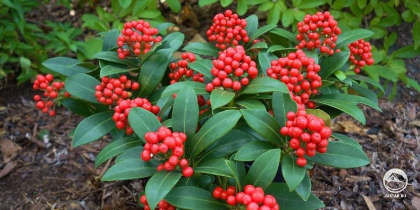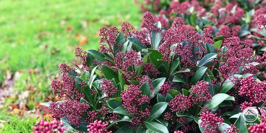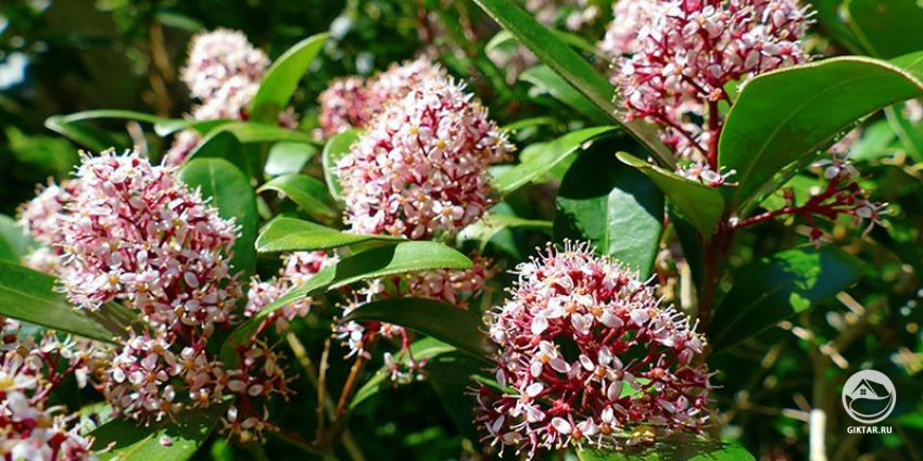 Выращивать скиммию просто. Она предпочитает полутень, влажную почву, хорошо реагирует на подкормку минеральными удобрениями.