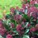 Цветет скиммия в мае. Белые соцветия по форме были похожи на сирень. На месте цветков образуются гроздья алых ягод. Плоды у скиммии появляются только на растениях женского пола. Поэтому для опыления цветков нужно сажать мужские и женские растения. Ягоды обычно держатся на растениях до цветения следующей весной.