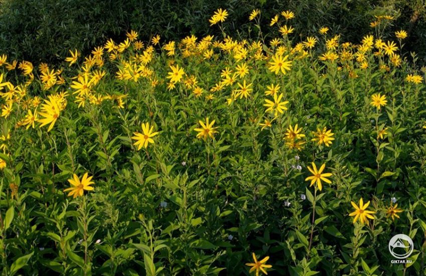 При том, что топинамбур является необычайно полезным корнеплодом, многое садоводы выращивают его в основном в декоративных целях. Высокие растения, с зеленой листвой и ярко-желтыми цветками могут украсить любой сад.