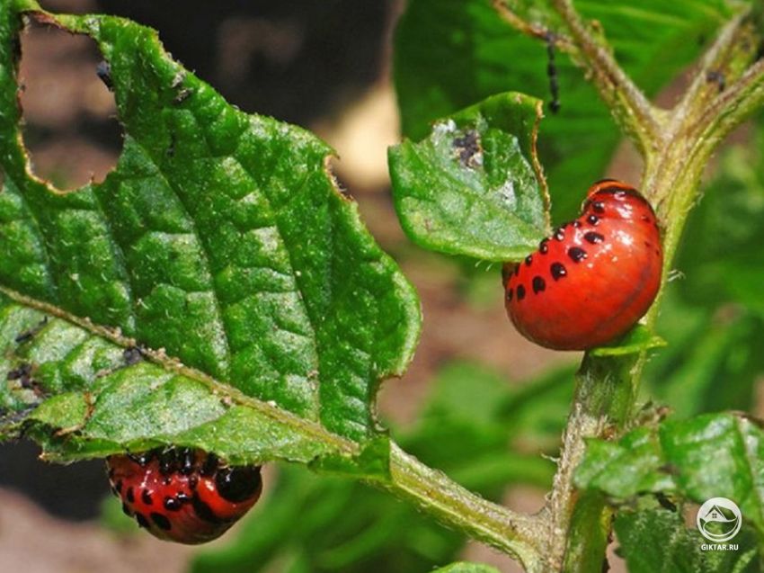 Колорадский жук поедает в основном листья баклажана. Появившиеся из яиц личинки и сами жуки очень прожорливы. Они могут за короткий срок уничтожить посадки. Вредителей в теплице можно собрать вручную, разложив приманки из ботвы картофеля, томата, листьев баклажана.