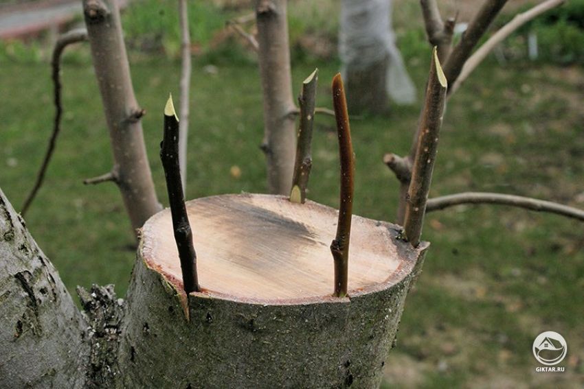 Прививку черенков проводят весной. Если подготовка и прививка прошли успешно, черенки сформируют сильные ветви. В первый год после обрезки возле спилов могут расти новые побеги, которые нужно удалять.
